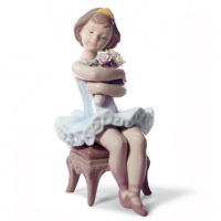 Timid and charming, she clasps the beautiful bouquet of flowers she has been given after her long-awaited début. A glossy porcelain creation decorated in soft pastel colours, perfect as a gift to a ballerina, as a collector's item or as a decoration.