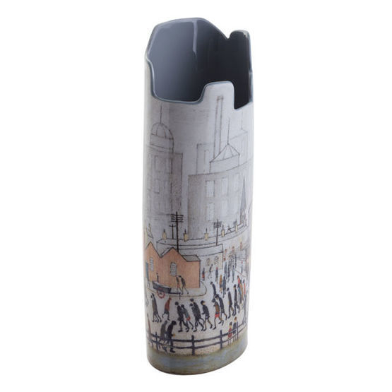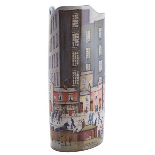 Lowry’s classic piece “Coming from the Mill” is depicted in this stunning vase.