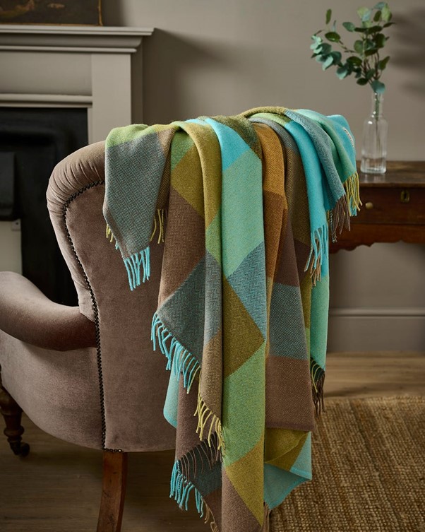 Woven at Avoca's mill in County Wicklow by their skilled artisan weavers, this throw incorporates a subtle herringbone weave in gentle tones of blue, green and brown. The luxurious lambswool fabric ensures ultimate softness. The perfect companion for a cosy night on the couch, or as an extra layer on your bed.