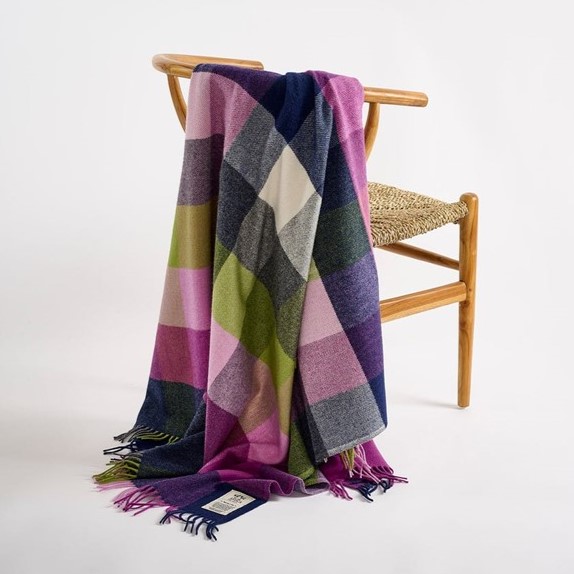A longtime favourite, the vibrant purples and greens of the Pioneer throw are reminiscent of the heather and bracken across the Wicklow landscape. Woven at our mill, the lambswool of this throw ensures both luxury and comfort.