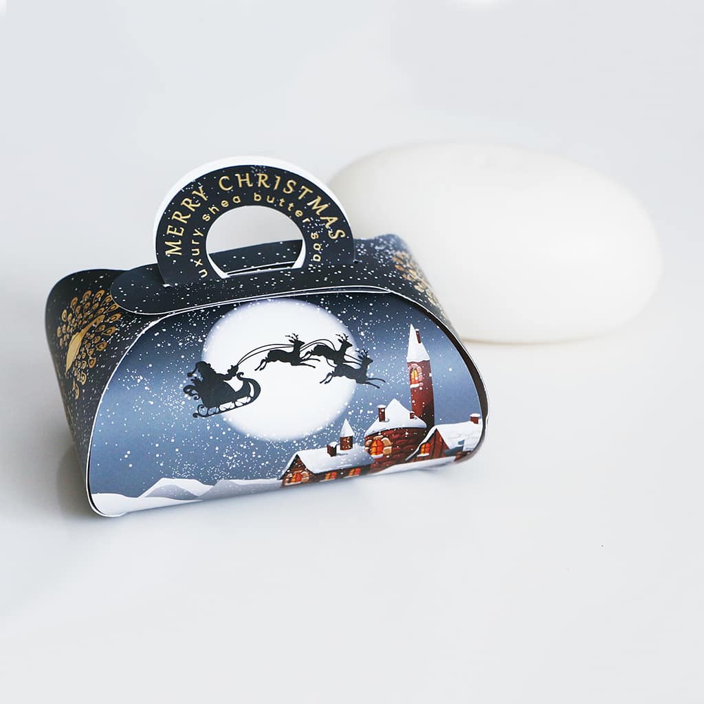 Searching for that perfect Christmas gift for a friend or loved one? Look no further than our Winter Village Gift Soap: a generously sized soap bar presented in a beautifully designed gift box. The Winter Village Gift soap has a mulled wine fragrance evoking the spirit of Christmas with the scent of cinnamon, nutmeg and red wine. Enriched with moisturising shea butter, this soap bar will nourish and moisturise all skin types.
