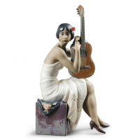 The mythical image of the Spanish woman, enshrined in the work of romantic artists, traditional ballads and the paintings of Julio Romero de Torres. A black-haired beauty, with dark skin and deep, mysterious eyes, carrying a Spanish guitar and wearing an embroidered shawl over the shoulders. A stoneware piece, finished with enamels, that has a strong decorative impact.