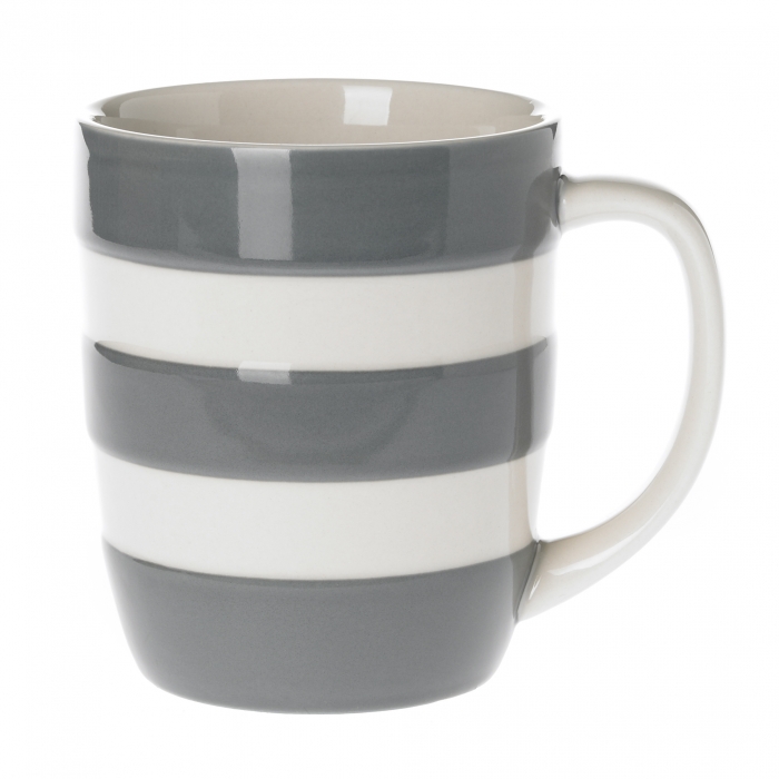 Our three-hooped, ceramic mug is gently tapered at the base and is the perfect thing for a lovely, restorative cup of tea.