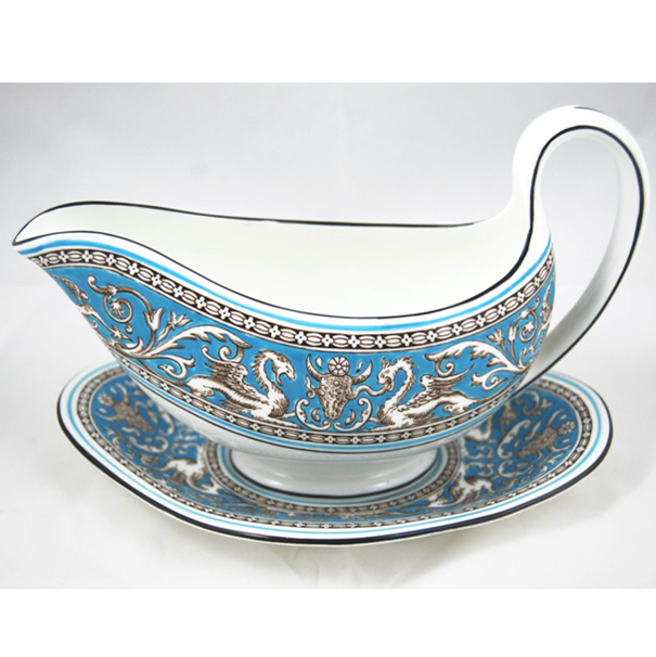 Wedgwood Florentine Turquoise Gravy/Sauce Boat & Stand