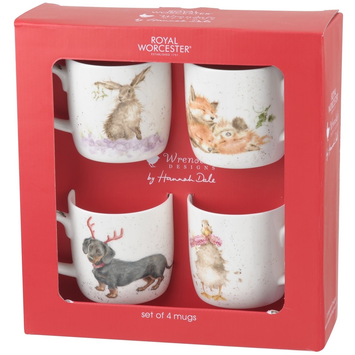 Fine Bone China mugs produced by Royal Worcester. The mugs have a different image on the front and back, and has a third image on the inner rim. With our usual quirky attention to detail, these beautiful quality mugs make a lovely gift.