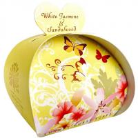 The White Jasmine and Sandalwood Guest Soaps contain three perfectly packaged heart-shaped soap bars, perfectly packaged in a beautifully illustrated gift box. Enriched with moisturising shea butter, the White Jasmine and Sandalwood scent has a floral heart of oceanic lily, white jasmine and violet leaf, underpinned with amber and musk base notes.