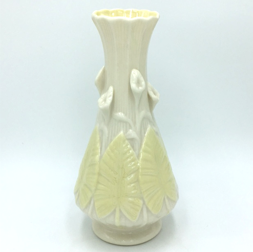 Belleek Irish Pottery Lily Nile Vase Yellow Leaves