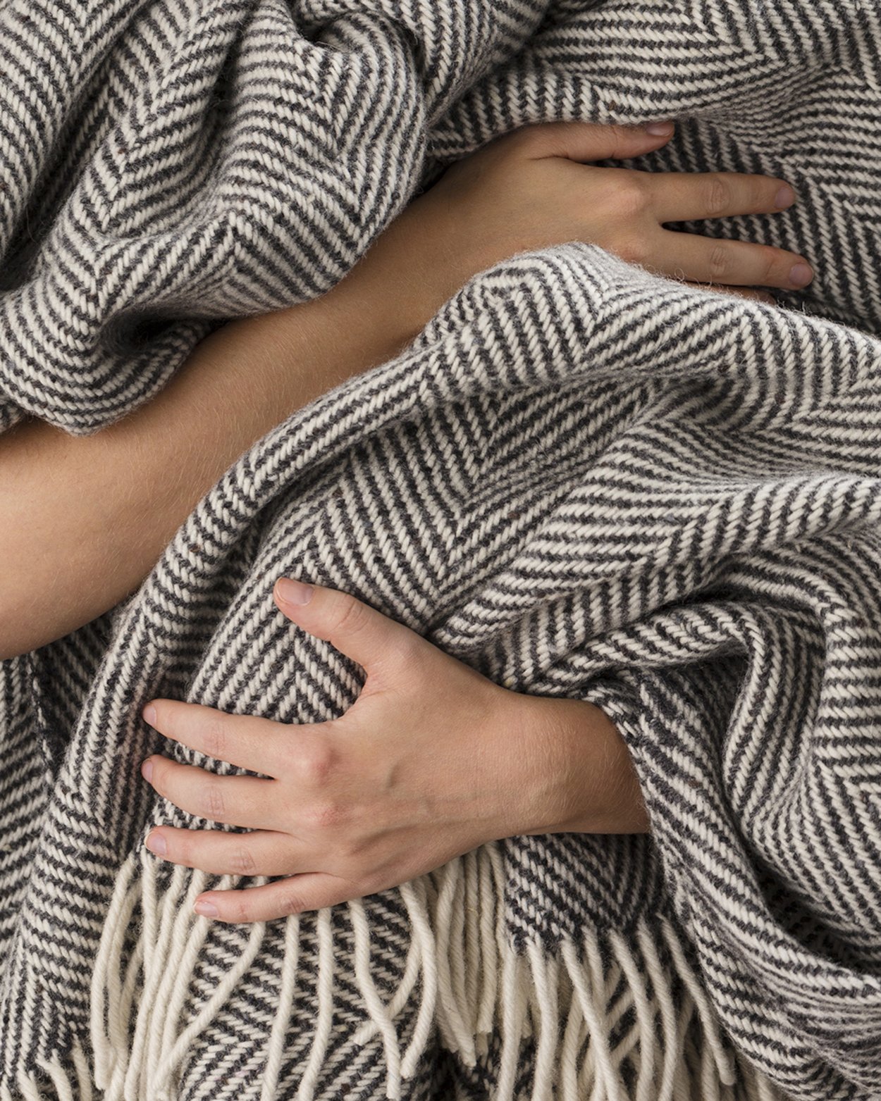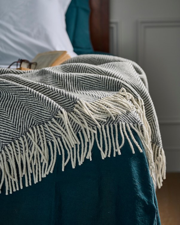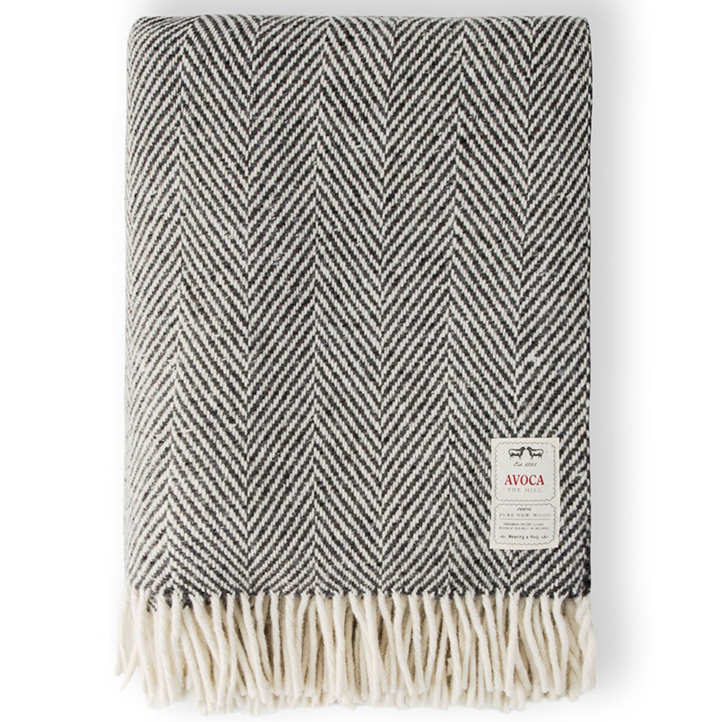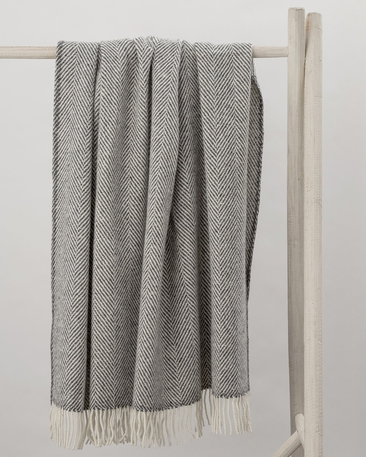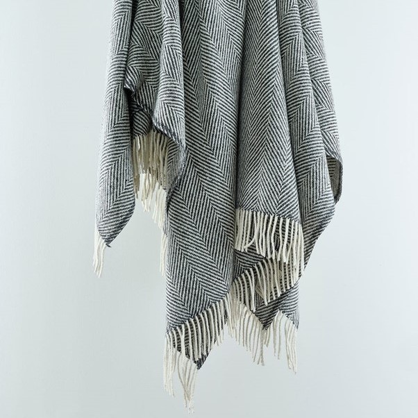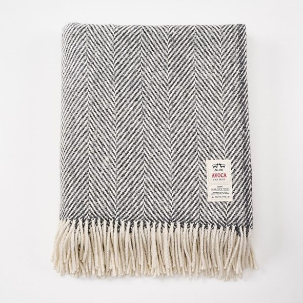 Avoca's heavy donegal throw in grey boasts a subtle herringbone weave that is simple and classic. Crafted from pure new wool this throw is perfect for wrapping up with on chilly evenings.