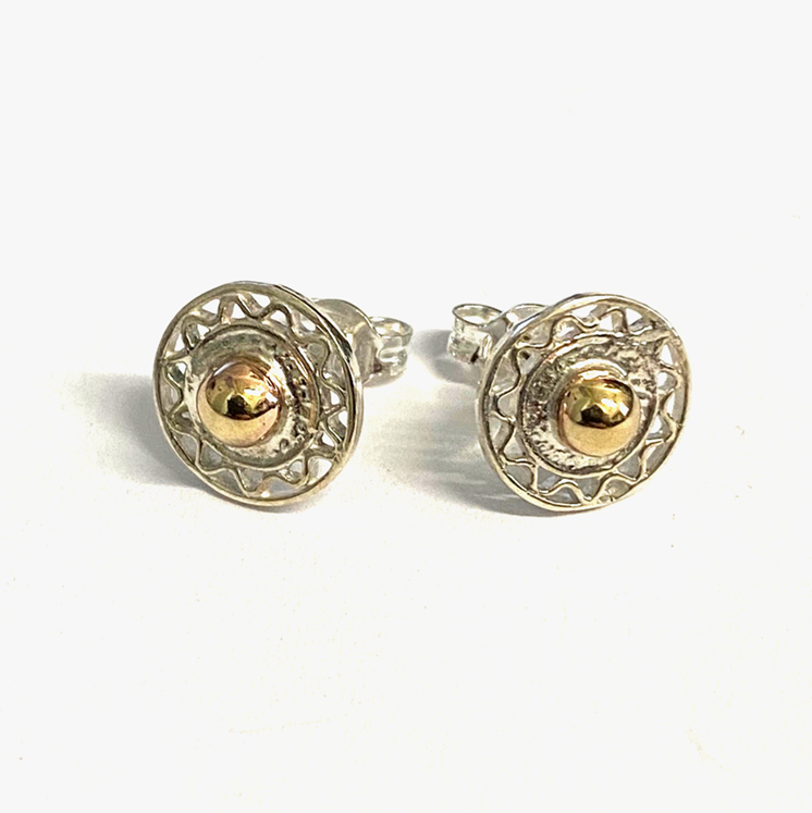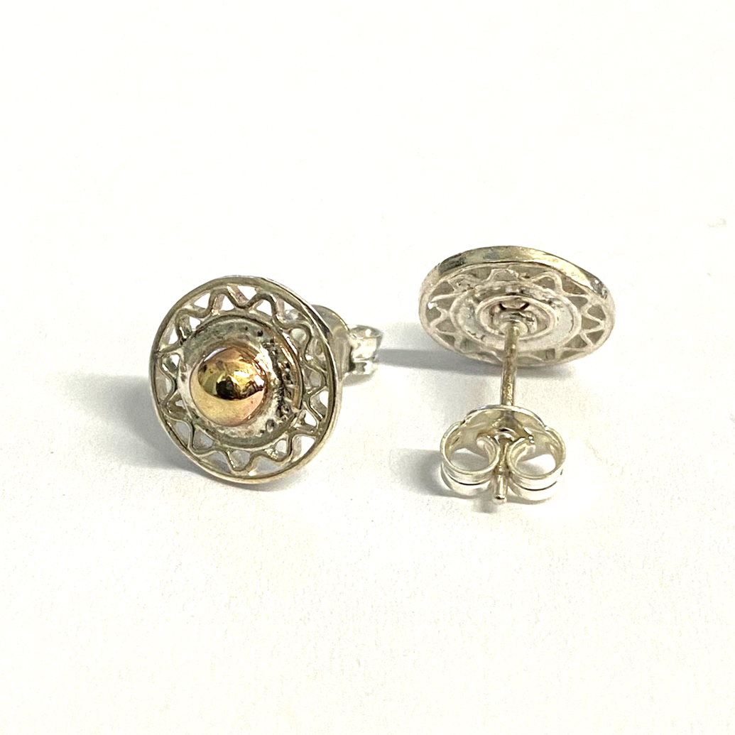 Description: Sterling silver and 9ct gold filigree stud earrings.