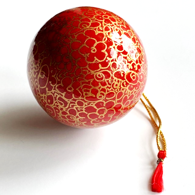 Paper mâché is one of the most popular of crafts practiced in Kashmir. The tradition of Paper mâché in Kashmir has its origin rooted in the 15th century, when King Zain ur Abideen invited many accomplished artists and craftsmen from Central Asia. This Paper mâché bauble has been made by a team of exceptionally skilled artists in Kashmir. Paper mâché is a unique combination of designs and colour which is practiced on variety of moulded objects. The artists use the traditional technique in giving form to the products. This beautiful technique involves the method of mixing paper pulp with water which is later given the shape of the mould. As the pulp is dried, it is removed from the clay mould, giving the desired shape, cut into forms and glued together.