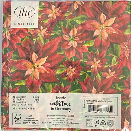 IHR Large Luncheon Napkins/Serviettes - Poinsettia Vintage
