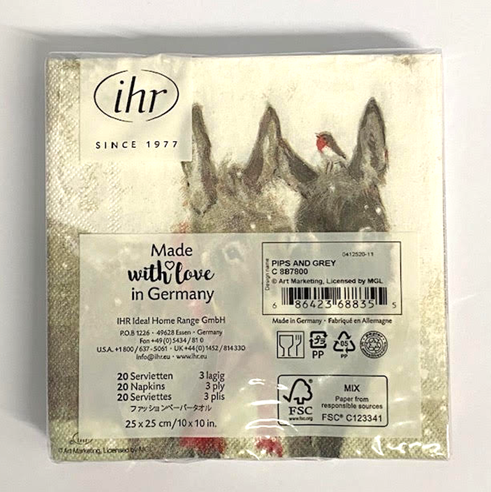 IHR Small Cocktail Napkins/Serviettes - Pips and Grey (Donkeys)