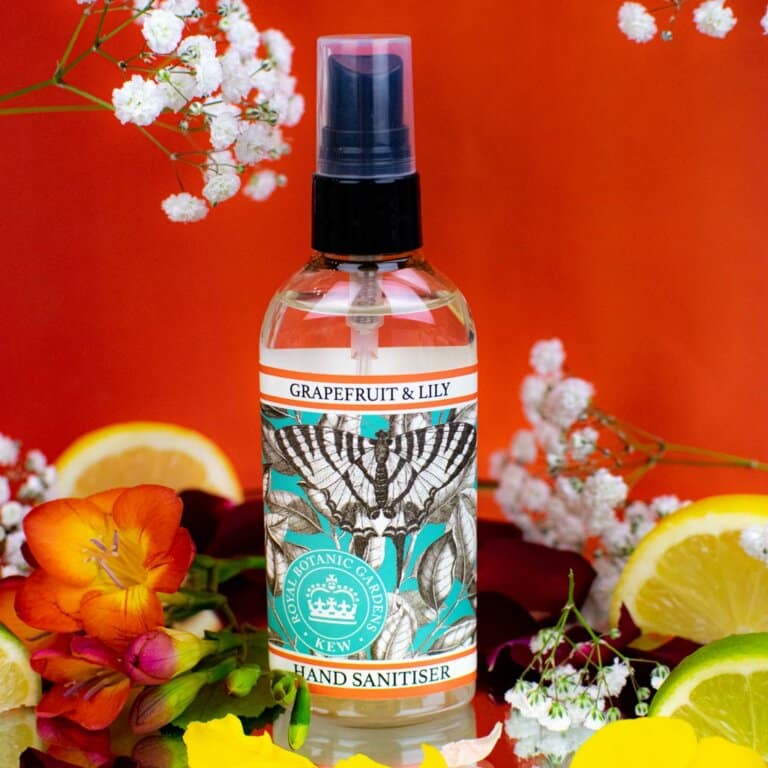 Grapefruit and Lily hand sanitiser, from the Kew Gardens collection. This powerful 75% alcohol hand sanitiser is infused with aloe vera and vitamin E to help moisturise and nourish your skin. This antibacterial hand sanitiser spray is in a handy travel size of 100ml, perfect for on the go. Crisp and fresh, this luxury hand sanitiser has a grapefruit and lily citrus fragrance puts grapefruit in the limelight, together with a beautiful lily.
