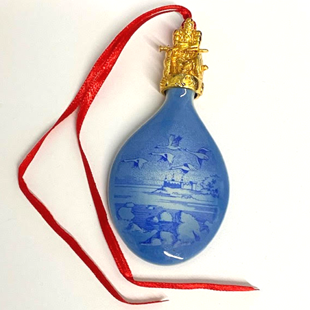 Copenhagen Christmas drop ornament was designed by Sven Vestergaard and decorated under the glaze.
