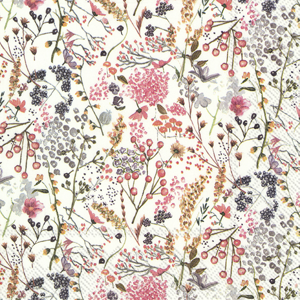 These napkins are printed with waterbased colours on oxygen-bleached cellulose.