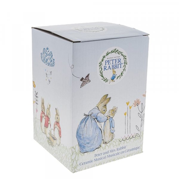 This charming and traditional Mrs. Rabbit and Peter Rabbit Musical makes a lovely traditional gift or nursery keepsake that children and parents alike will love and treasure forever. Wind up with the key and watch your favourite characters gently twirl around to the soothing sounds of Au Clair De La Lune.