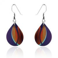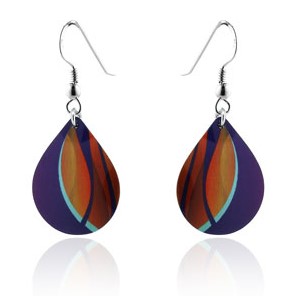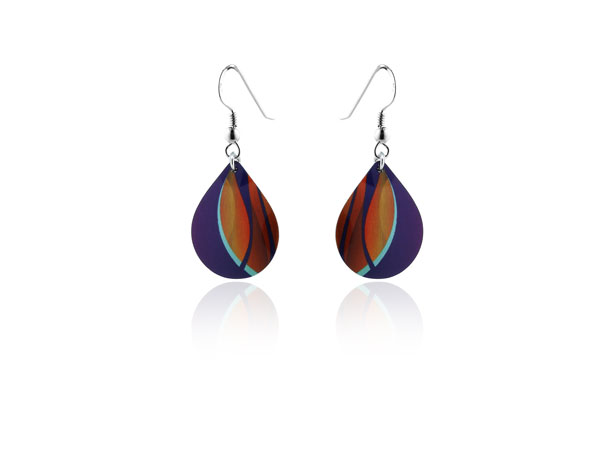 Multi-coloured eye-catching earrings with accents of orange and purple with standout turquoise curved line detail.