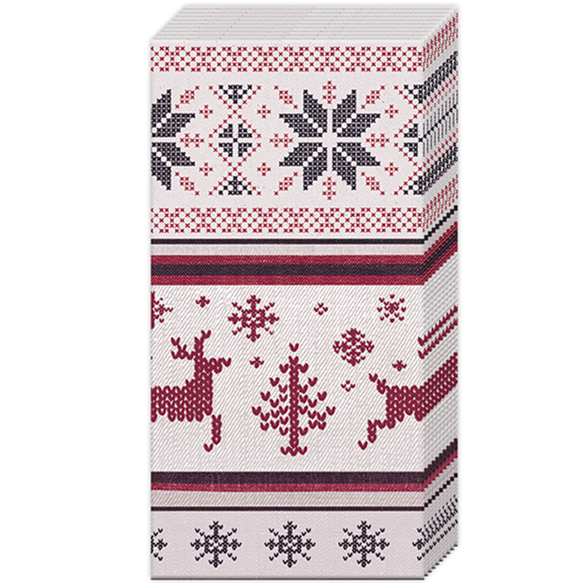 IHR Pocket Tissues/Hankies - Norweigian Knit Cream/Red
