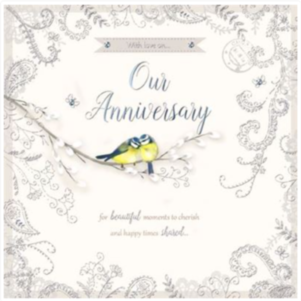 Message inside reads: For memories to treasure and for tenderness shown For friendship that grows and for love and laughter, always I love You Happy Anniversary
