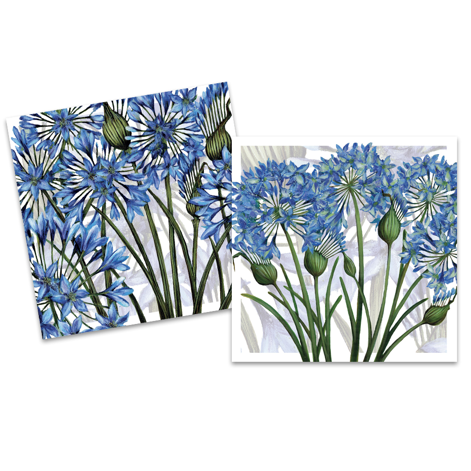 Each card measures 10cm square, featuring two complimenting designs from Caroline’s Agapanthus collection. This set contains 10 blank notelets, with an accompanying white envelope.