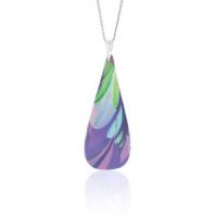 The gentle teardrop shape features a design of purple and pale blue overlaying tones with soft green highlights.