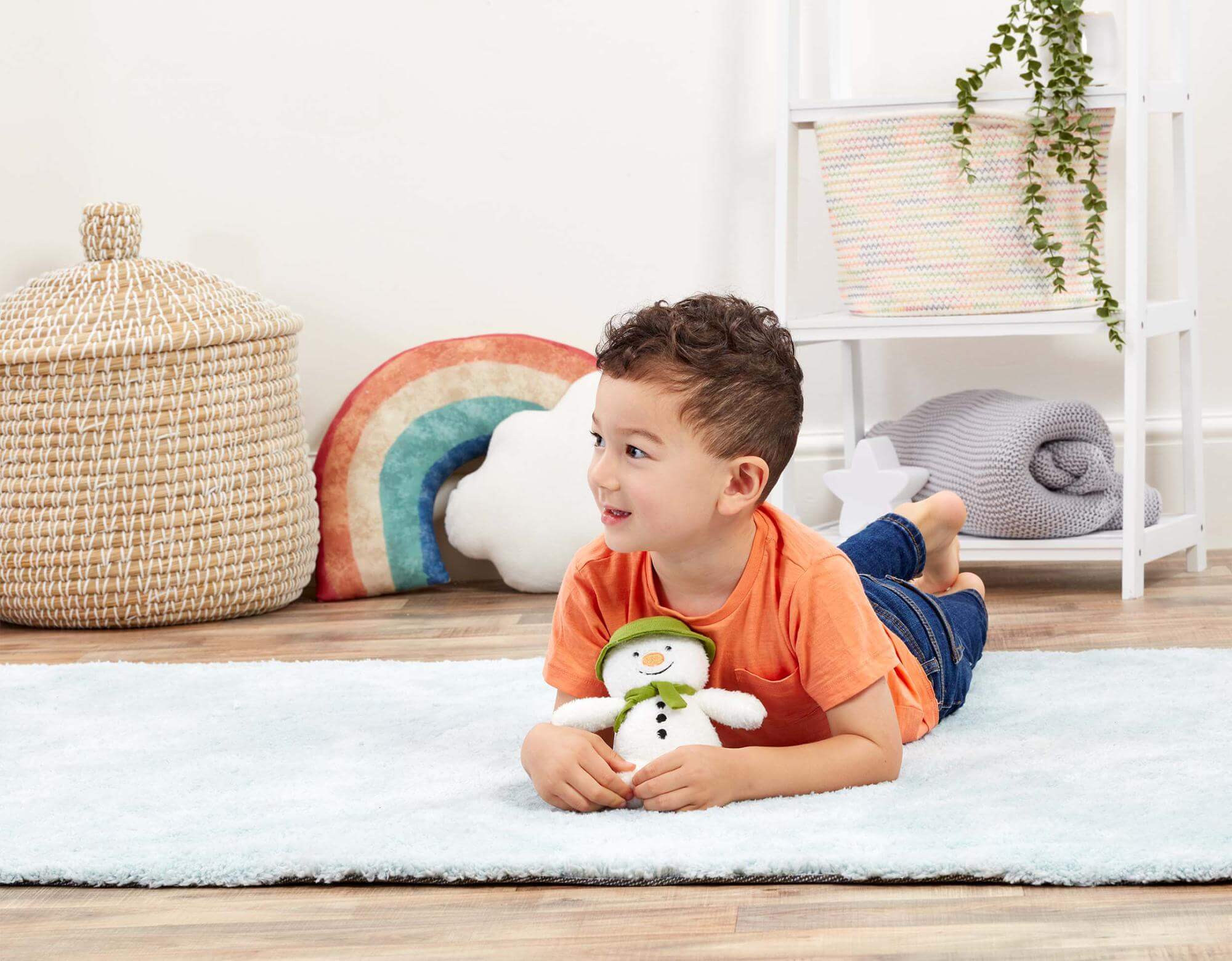 The Snowman Bean Toy is ideal for little ones to cuddle at bedtime and is the perfect companion when being read the Snowman book or watching the Snowman film. The Snowman Bean Toys is super soft and measures 15cm in height. He wears a smart green hat and matching scarf to keep him warm. The Snowman Bean toy has a black embroidered mouth and eyes and a bright orange felt nose. He has embroidered black buttons on his body. Who could resist this cute little Bean Toy?