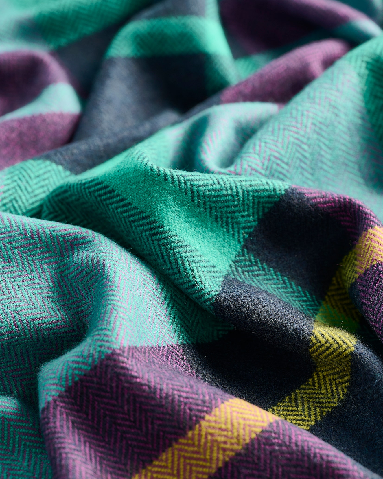 A rich and punchy colour palette of deep blues, teals and purples elevates the traditional feel of our Knights Watch throw. Drawing inspiration from classic tartan plaid designs and woven using luxuriously soft cashmere blend yarns, it's perfect to dress your favourite chair or to cosy up with on chilly evenings.