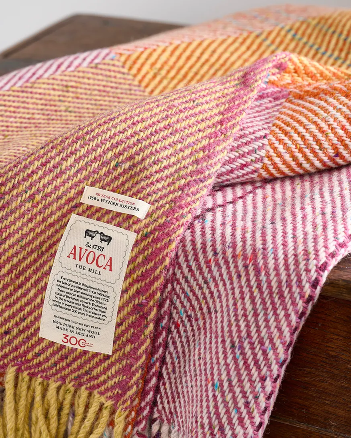 Part of our mill's 300 year heritage is the stories woven through the rich fabric of its history. Our talented designers have reinterpreted old woven swatches dating from 1954 to create this colourful and robust pure new wool throw. Directly inspired by the wonderful Wynne sisters who injected design and creative direction into the mill during this era, their design skill and use of colour remain at the heart of how we weave today.