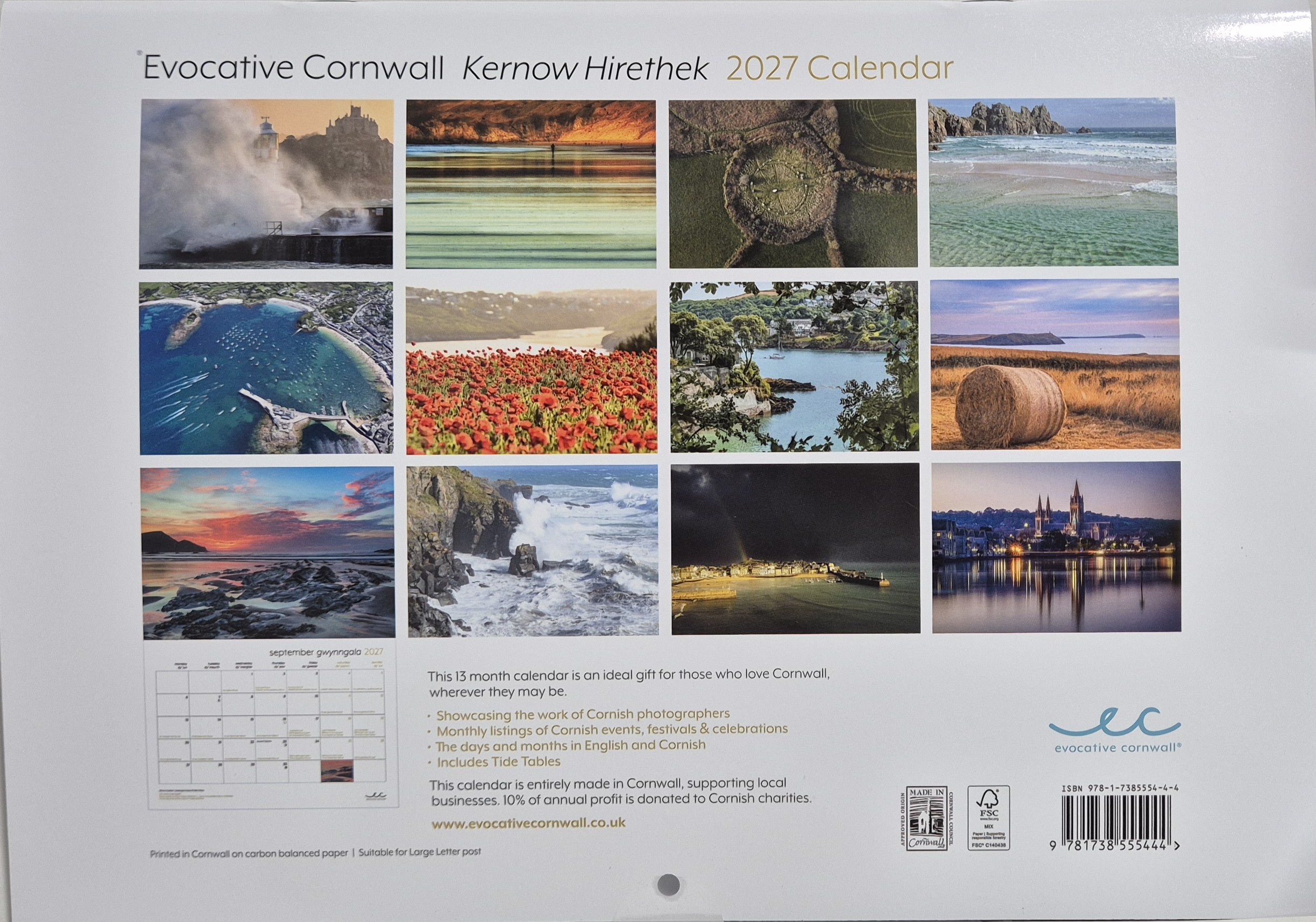 A photographer's paradise, Cornwall - Kernow - boasts soaring cliffs, idyllic beaches, busy harbours, and everything in between. So each year Evocative Cornwall work in collaboration with photographers throughout the Duchy, to ensure the calendar reflects the much-loved Cornish landscape, its different moods and changing seasons as widely as they possibly can.
