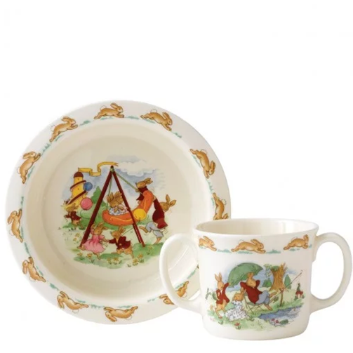 Handmade and hand-decorated, each Bunnykins 2-piece Baby set is as unique and special as the baby or toddler you're giving it to; right down to a variety of adorable Bunnykins motifs that might not match the one illustrated. With the included bowl and mug, you can feed baby every day of the week; both items are the perfect size for little hands and dishwasher and microwave-safe. Supplied in a beautiful gift box, this is a present sure to be treasured for many years to come. Please note that the design depicted may differ to the item received.